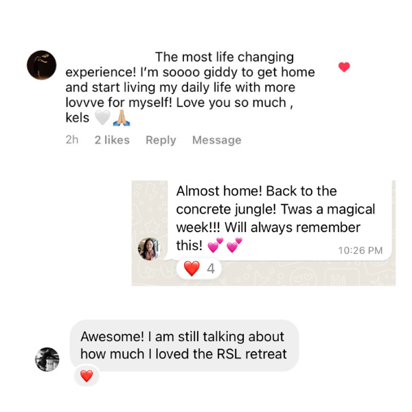 There’s a reason why past Radical Self-Love Retreat attendees have referred to this retreat as “the best moments of my life”, “magical”, “a decision I will ALWAYS be so grateful for”, and the “best retreat/getaway/vacation EVER!!!”.